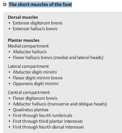 - 단지굴근, 무지내전근, 족저방형근, 4개의 충양근, 척측골간근