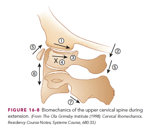 Extension of the upper cervical spine (Fig. 16-8 ) occurs as a result of