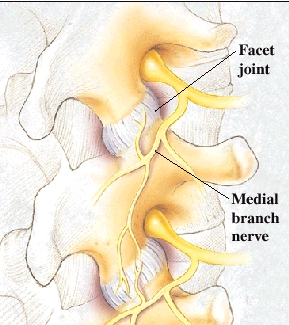 The facet joints are planar synovial joints with articular cartilage on the surfaces that is enclosed in a fibrosis joint capsule. Found within the joint capsule is meniscoid, adipose, and connective tissue.1 The medial branch of the dorsal primary ramus innervates the facet joints.