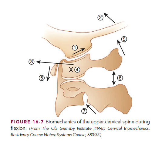 During flexion of the upper cervical spine (Fig. 16-7 ),