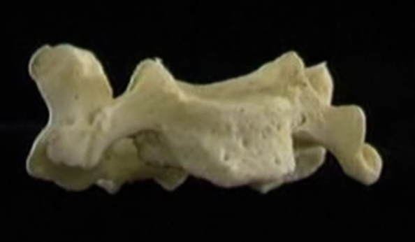 - 경추 극돌기는 C6번까지 두가지로 갈라져 있고(bifurcated), C2에서 가장 크게 갈라져 있고, 비대칭임. 경추극돌기는 C6번으로 내려오면서 크기가 작아짐. C7번 극돌기는 갈라짐이 사라지고 하나의 극돌기 형태임.