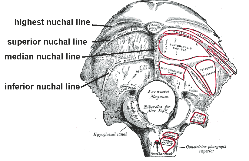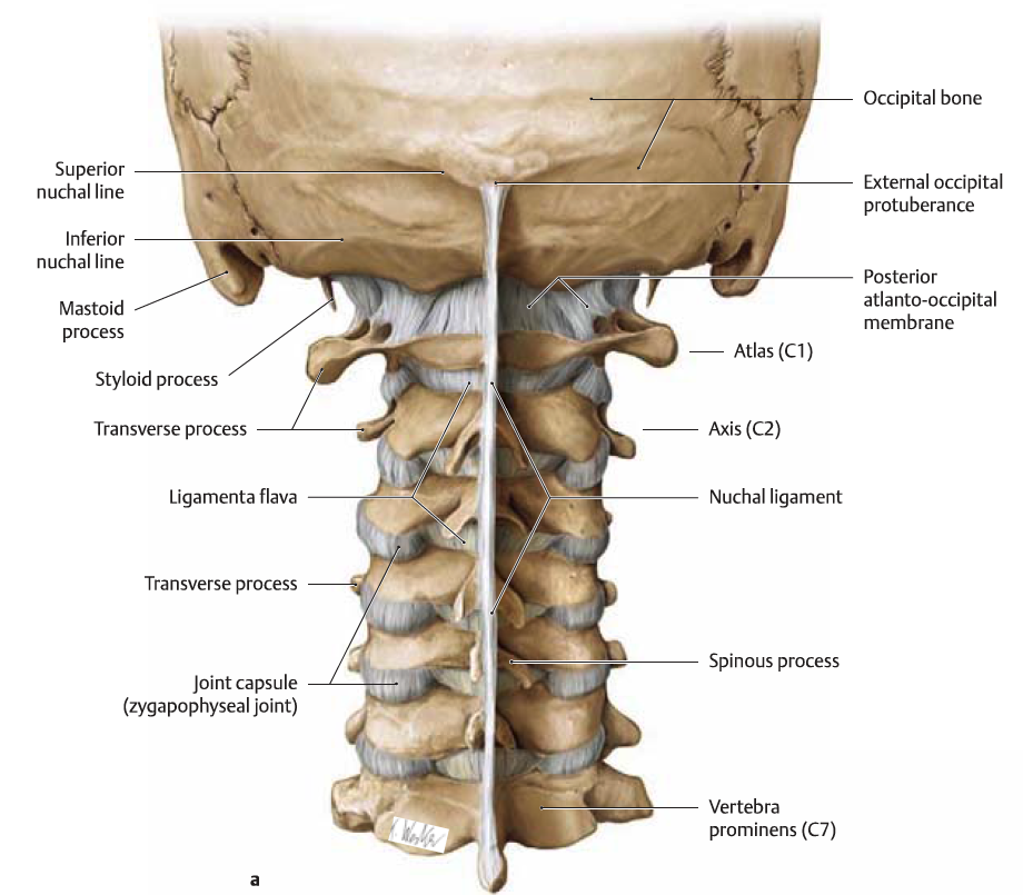 • Descending part of the trapezius. Extends from the superior nuchal line and ligamentum nuchae onto