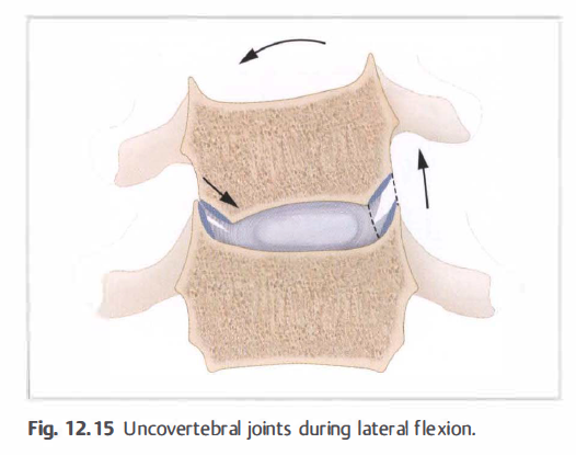 ages of 45 and 50. This is a natural adaption of the intervertebral disks in response to the large translation of the vertebra during cervical spine flexion and extension. The uncinate processes act as rails and guide this translation movement. The bisectioning of the disk is the reason why whiplash can cause height to increase by up to 2.5 cm (abnormal ability to separate) within seconds and is especially seen in the C2/C3 segment.