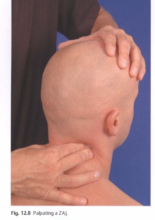 In the cervical spine, a relatively large number of bony structures, joints, and muscles can be reached and differentiated from one another using palpation. Important reference points include the accessible spinous processes (C2, C5-C7) and the laminae of every cervical vertebra inferior to C2. The fact that the spinous process and laminae of a vertebra are located at the same level is very convenient for palpatory orientation. This is of assistance when the exact level of structures, for example, the ZAJ and the transverse process, is being determined.