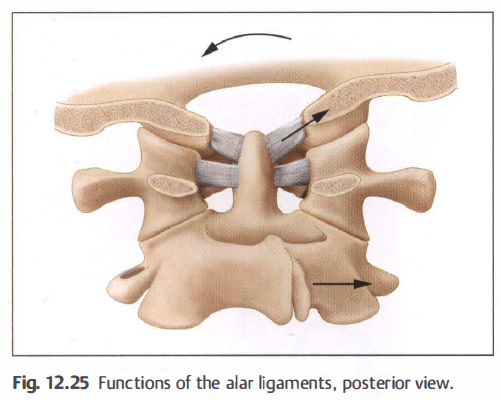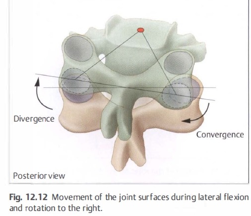 However. therapists are not allowed to draw conclusions regarding the coupling of movements at individual segments based on the relationship between movements at the occiput and C2. The coupling of lateral flexion and rotation is individual here and must therefore be assessed on each patient separately. The variable anatomical shape of the joint surfaces is the presumed cause of these differences.