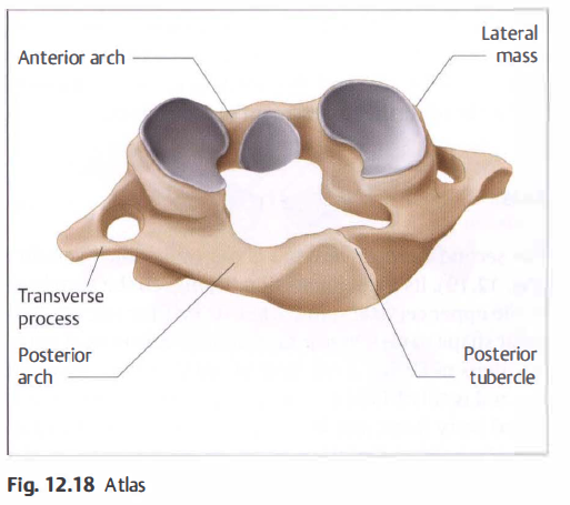 The transverse process is composed of two tubercles that connect laterally and form a hole at one point. This foramen transversarium has a diameter of approximately 4.5-5 mm, which almost corresponds to the diameter of the vertebral artery.