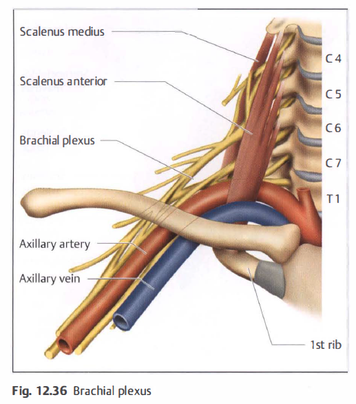 The posterior scalenus gap ( Fig. 1 2 .34) is formed by the scalenus anterior and scalenus medius. The subclavian artery