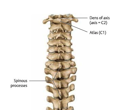 - 넓은 laminae는 두번째 손가락만큼이나 넓게 잘 발달해서 경추 근육아래서 촉진이 가능함. laminae 는 극돌기 level에 위치하고, laminae의 끝에 후관절이 돌출되어 있음.