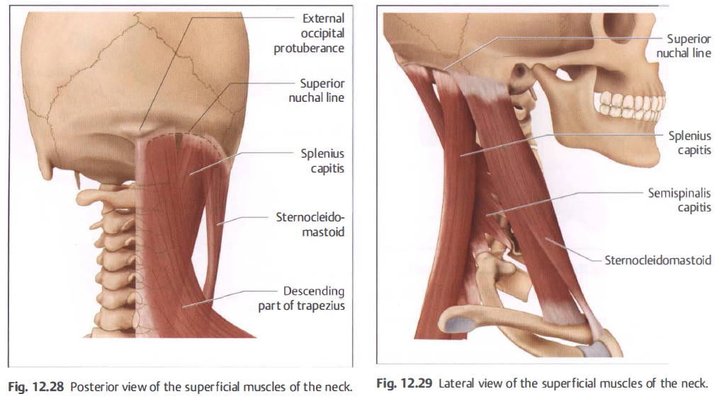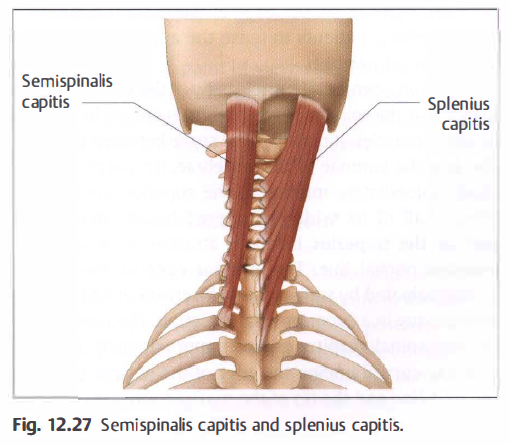 • Splenius cervicis and capitis (Fig. 1 2.27). The course of splenius capitis: from ligamentum nuchae and the C3-
