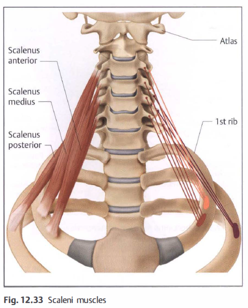 over the pleural dome, with nerves and vessels being able to pass through two gaps in the muscles (scalenus gaps) ( Fig. 1 2.33).