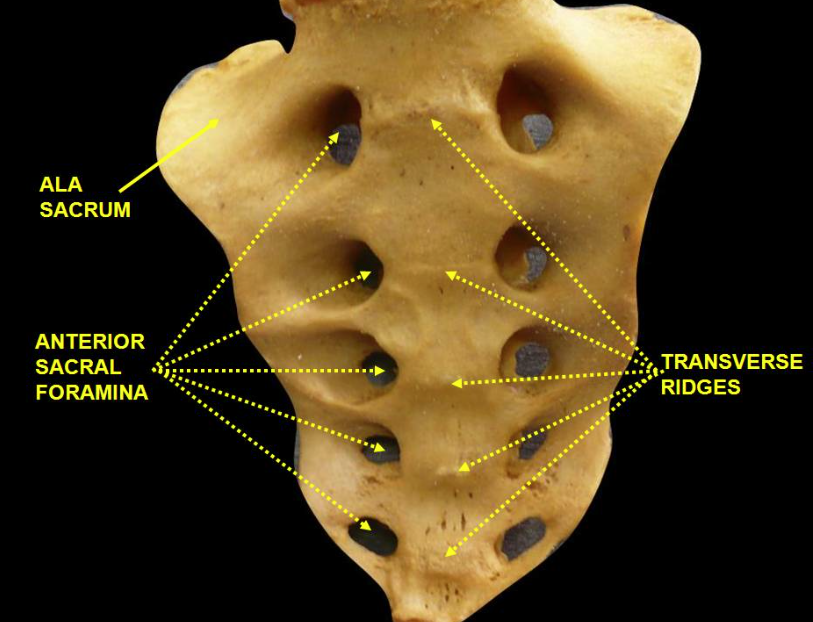- 장골, 좌골, 치골로 구성된 두개의 골반뼈와 천골이 존재.
