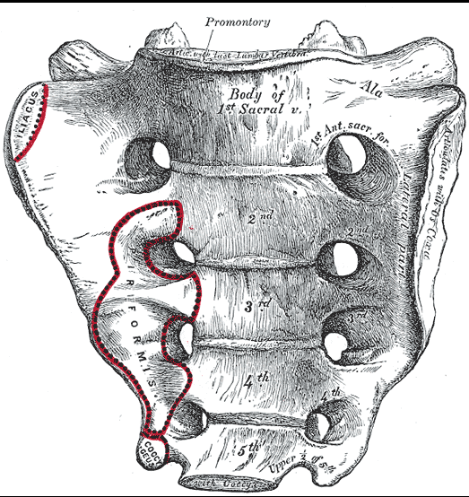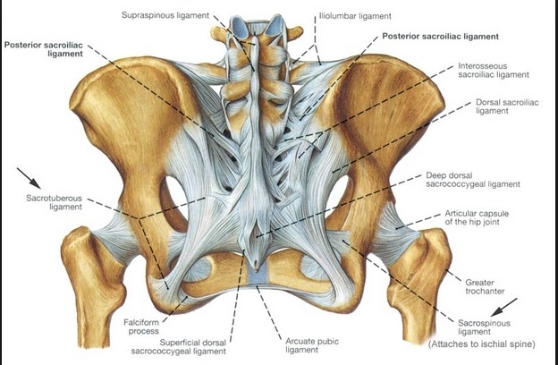 - 서로다른 형태의 부하가 여기에서 처리됨. 예를들어 앉기 또는 서기 부하의 전달 등. 중요한 인대 구조와 근육이 이부위에 부착함.
