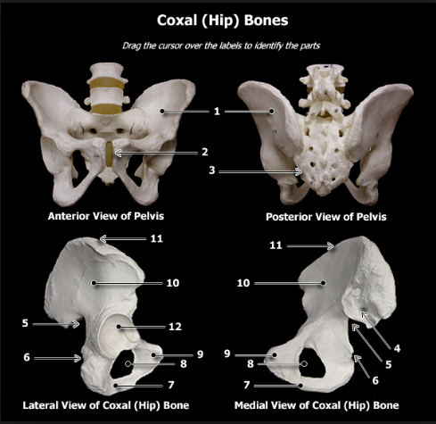 - 골반은 출산 동안 많이 움직일 수 있음. 고관절 운동성 증진은 계통발생의 결과에 의함. 대퇴골두는 인체의 추선에 조화를 이룸.