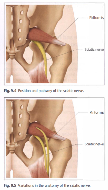 These problems can be confirmed using an accurate and detailed palpation with the application of pressure. A piriformis compression syndrome occurs only when at least a portion of the sciatic nerve passes through the muscle belly of the piriformis. According to Vleeming. the fibular part passes through the piriformis muscle belly in only 4%-1 0% of all people (Fig. 9.5).