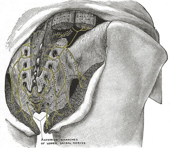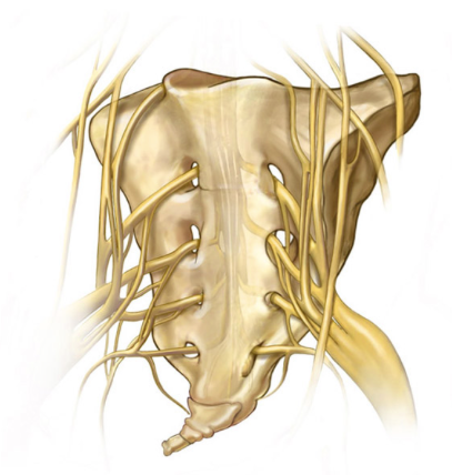 Early 20th century German literature asserts the anterior SI joint is supplied by the obturator nerve, superior gluteal nerve and the lumbosacral trunk (8). More recent literature suggests the anterior joint is innervated by L2-S2 (1), L4-S2 (9), and the L5-S2 ventral rami (10). Some authors have even suggested that the anterior SI joint is devoid of nervous tissue (7,11). In a study testing the ability of L5 dorsal ramus and S1-4 lateral branch blocks to protect the SI joint from an experimental stimulus, 6 of 10 subjects retained the ability to perceive ligamentous probing (12).
