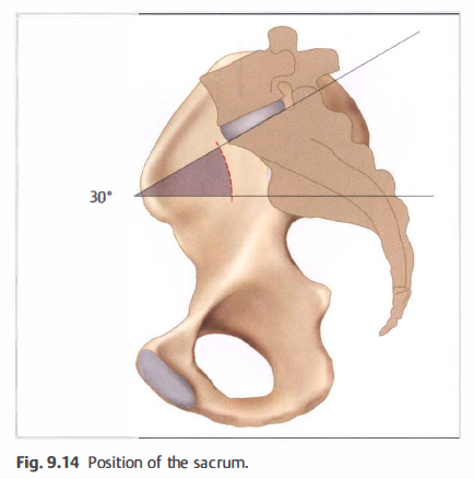 - 천골은 시상면에서 같은 위치로 남아 복강쪽으로 기울어져 있음.