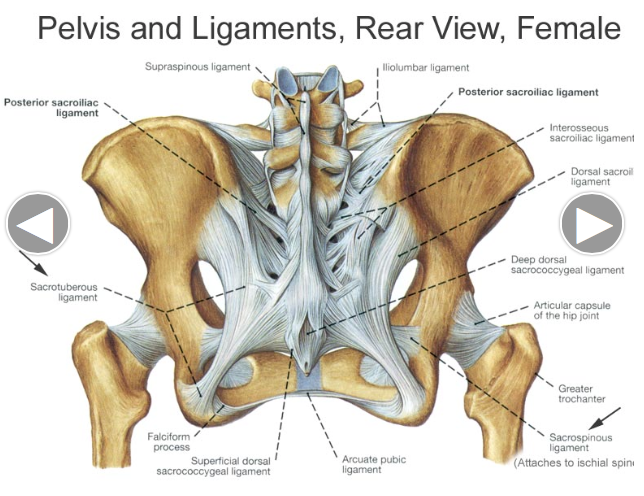 - 골반에 몇가지 정적, 동적 중요성 포인트가 있음. 천골의 기저부, 장골릉, 천장관절, 치골결합, 좌골..