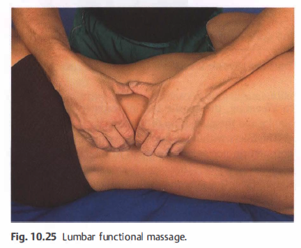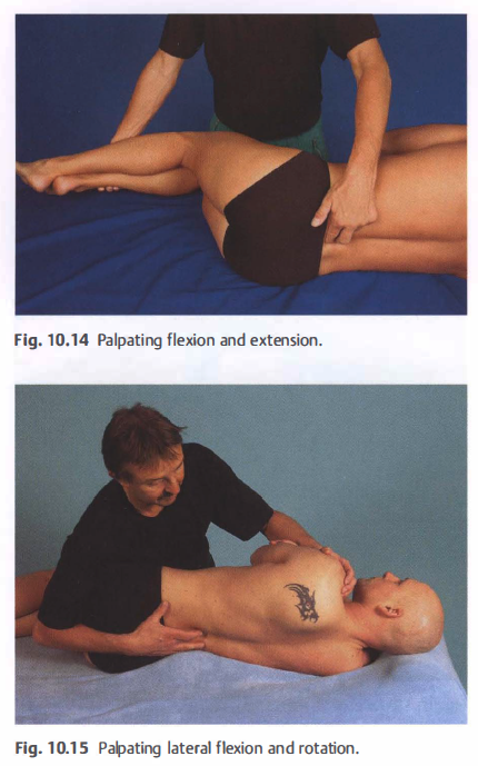 The therapeutic approaches to treatment always address the entire lumbar spine. Precise palpation techniques only have limited use here. For instance, it is generally not necessary to ascertain which segment is affected by provoking pain with palpation or assessing the local mobility. It is important to assess whether there is excessive muscle tension in the paravertebral muscles for the treatment of subacute disk-related symptoms.