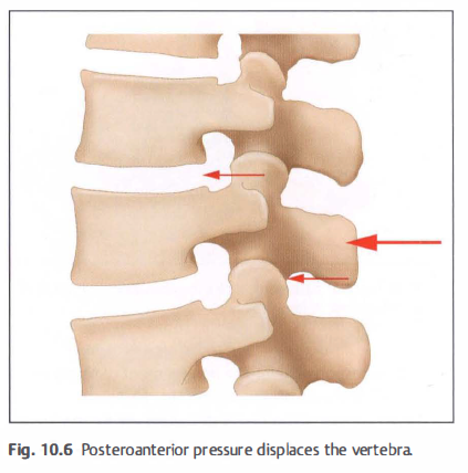 • Posteroanterior pressure applied to a spinous process moves the vertebra slightly anteriorly (Fig. 10.6).