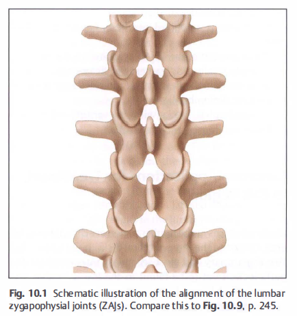 • The alignment of the lumbar vertebral joints superior to L5 makes extensive movement in the sagittal plane possible (Fig. 1 0. 1 ).