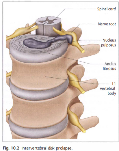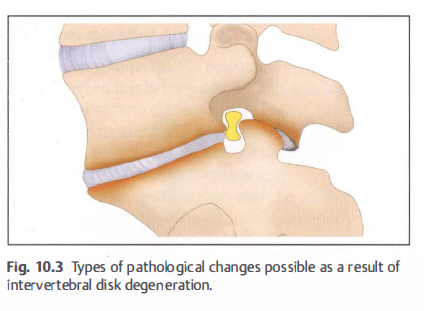 Most symptoms in the lumbar region are directly or indirectly related to the intervertebral disks. It is a known fact that the primary and most secondary intervertebral disk pathologies tend to be found in the lower lumbar segments of L4/L5 and L5/S1 . The primary intervertebral disk symptoms range from internal rupturing to the different forms of protrusions and prolapses of intervertebral disk substance (Fig. 10.2).