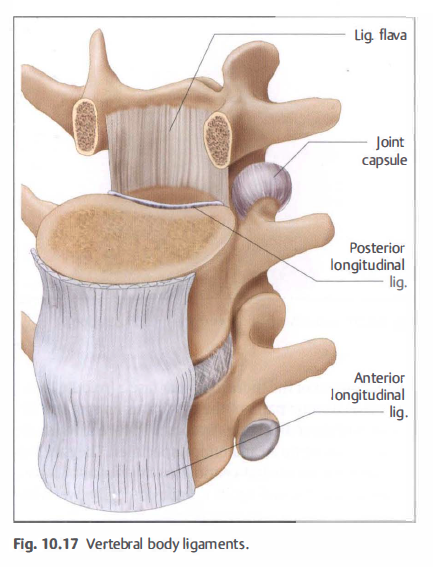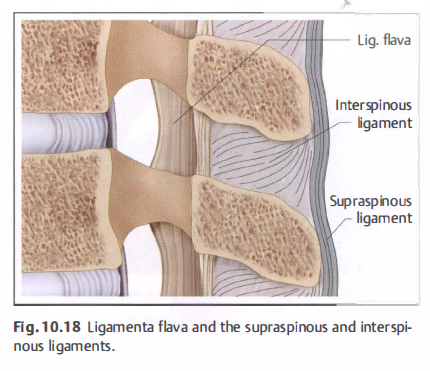 • Structures that decelerate movement and absorb forces: ligamentum flava, interspinous ligaments, thoracolumbar fascia.