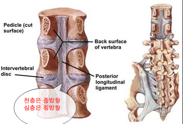 - 앞에서 언급한바와 같이 선자세에서 상체 체중의 대략 60%를 척추를 따라 천추 1번 종판으로 전달함.