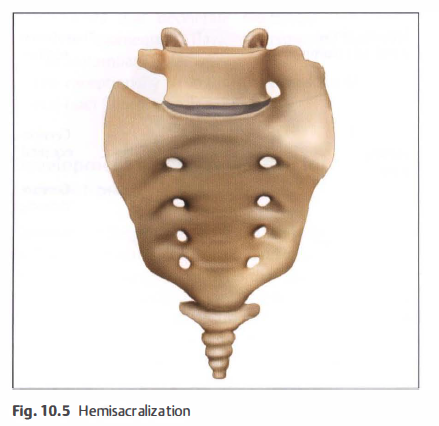 Anatomical variations in the number of vertebrae (e.g.,hemisacralization) as well as a multitude of pathological conditions are frequently found here. This distinctive feature is probably due to typical biomechanical loading in addition to the lumbar spine acting as the junction between the freely mobile vertebral column and the rather rigid pelvis, in particular the sacrum.