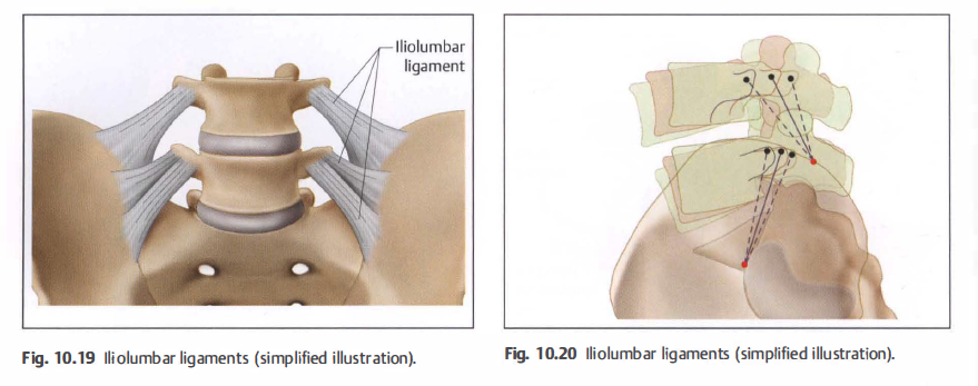• Strongly reinforced ligaments or ligaments that have been additionally developed (anterior longitudinal ligament, iliolumbar ligaments). 강력하게 강화된 인대(전종인대, 장요인대)