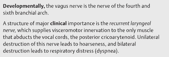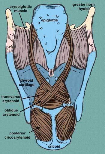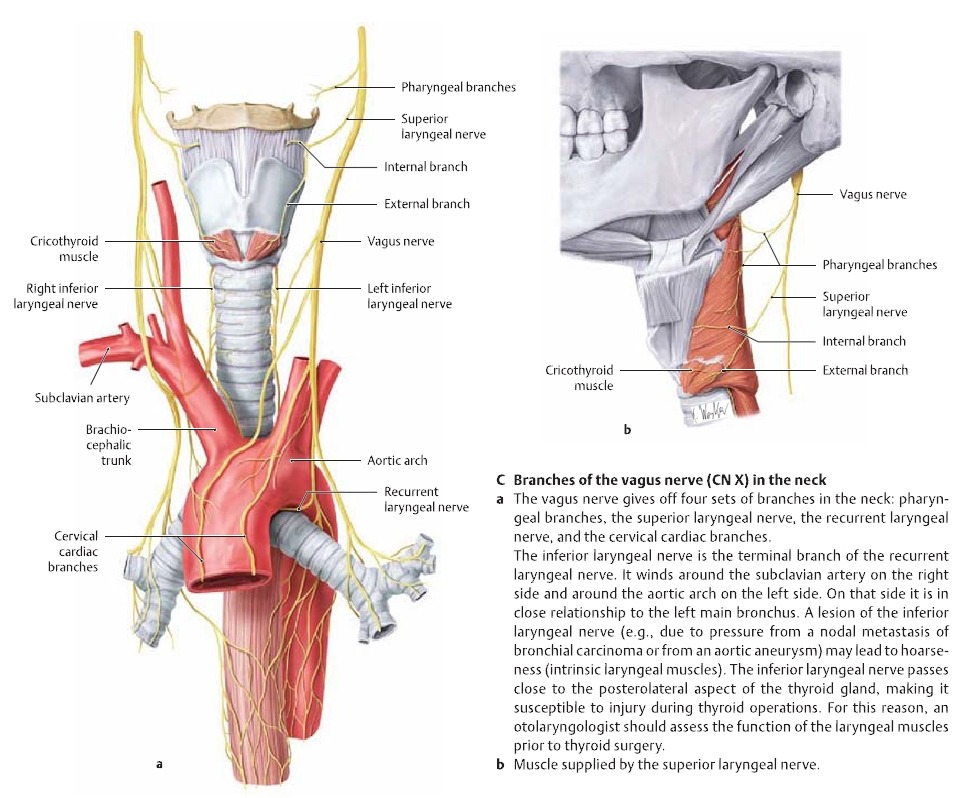 - 모든 후두근육(laryngeal muscle) : cricothyroid(superior laryngeal nerve), 기타 근육(inferior laryngeal nerve)