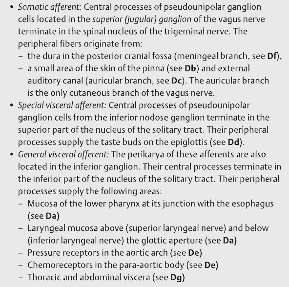 - 미주신경은 일반적, 특수 내장성 원심성 섬유를 함유할 뿐 아니라 내장성 구심섬유, 체성 구심성 섬유를 함께 가지고 있다.