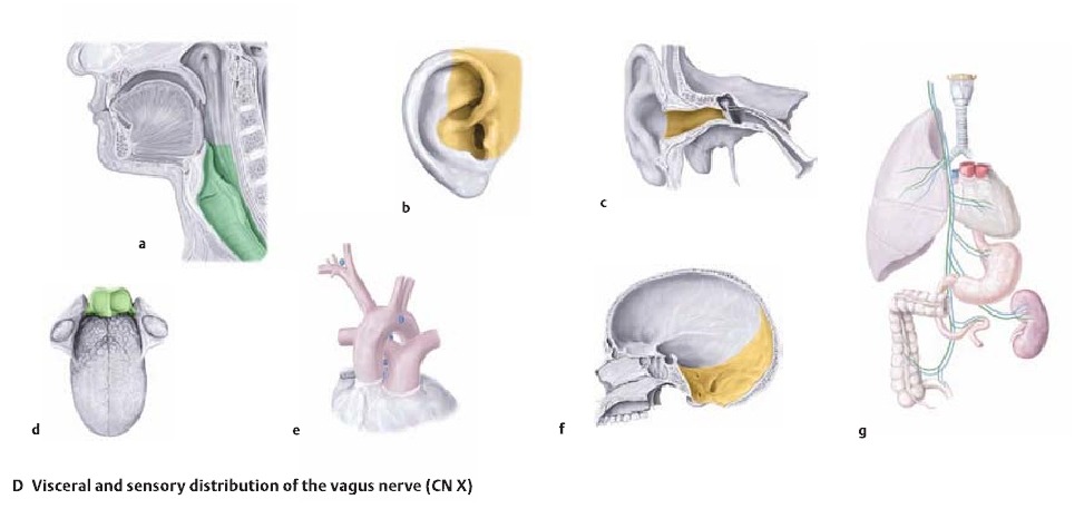 - 쉽게 말해 아래 그림의 대동맥, 기관, 인두, 인후, 고막, 심장, 폐, 위, 콩판, 대장, 소장 등에 자율신경 움직임을 명령할 뿐 아니라 감각을 전달하는 기능을 한다.