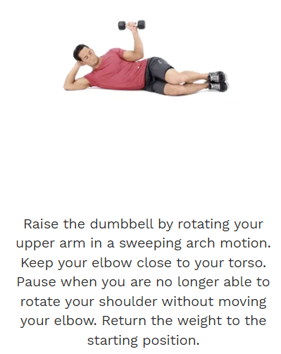 | Exercise 5 Airplane “V scapular” | Laying down in the prone position with 45° ABD of the shoulder, elbow extended, and the hands relaxed and facing up, the patient was asked to do the “V scapular” without lifting the hand. The movement had to be performed only by the scapulae. 운동 이름: Airplane “V scapular” (비행기 자세 V 견갑골 운동 – 팔 45° 외전) 목적