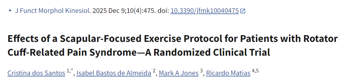 | 이 논문은 회전근개 관련 통증 증후군(RCS) 환자에서 견봉하 중심 운동 프로토콜(EMGBF: electromyographic biofeedback 유무)을 대조군 치료와 비교한 무작위 대조 시험(RCT)입니다. 60명의 환자를 3군으로 나누어 6주 후 효과를 평가했습니다. 주요 결과: 견봉하 중심 운동이 통증과 기능 개선에 효과적이며, EMGBF 추가 시 일부 측면(견봉하 안정화 근육 제어)이 더 우수합니다. 논문은 RCS의 생리적 배경과 운동 개입의 근거를 설명하며, 운동 방법이 상세히 제시됩니다. 1. 서론 (Introduction) 회전근개 장애는 어깨 병리의 50~85%를 차지하며, RCS는 통증, 기능 저하, 근력 약화, 운동 범위(ROM) 제한, 견봉하 근신경 제어 문제, 견봉하 운동 이상(dyskinesis)을 유발합니다. 기존 물리치료(전기치료, 운동, 마사지, 동원 등)는 증거가 부족하나, 운동이 통증 감소와 기능 향상에 효과적입니다. 견봉하 중심 접근은 통증 감소와 기능 회복에 유익하나, 증거가 상충됩니다. 이전 연구(저자들의 전작)를 바탕으로, EMGBF를 활용한 견봉하 중심 프로토콜이 단기 효과를 보였습니다. 이 연구는 6주 동안 세 프로토콜을 비교: 견봉하 운동(P_G), EMGBF 추가(P+EMGBF_G), 대조군(CT_G). 가설: P_G가 CT_G보다 통증/기능 우수; P+EMGBF_G가 더 우수. 2. 방법 (Methods) 연구 디자인: 전향적 RCT, 기저선과 6주 후 평가. 윤리 승인(CE-ESSAlcoitão 18/2022), 등록(NCT05516186). Figure 1은 환자 흐름도(flowchart)를 보여줍니다: 78명 모집, 18명 제외 후 60명 배정(각 군 20명). 참가자: 18~60세, RCS 진단(전외측 통증, 고도/회전 시 통증, Neer/Hawkins/Jobe 검사 중 2개 이상 양성). 제외: 신경 증상, 흉곽 출구 증후군, 수술/골절 병력 등. 표본 크기: NPRS 변화 검출 위해 초기 363명 계산 후 60명으로 조정(Table 1: 연령 41~42세, 여성 40~60%, 만성 증상 75~80%, 우측 지배 80~85%). 무작위화: 블록 무작위, 봉투 은폐. 참가자 눈가림, 치료자/평가자 미눈가림(편향 위험). 개입(Interventions): 주 1회 1시간 세션, 총 6주(7세션).