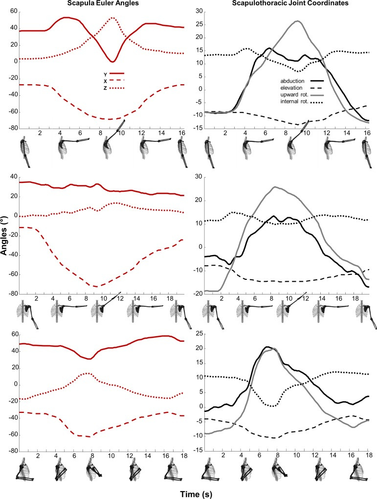 - 견갑상완관절은 6자유도를 가지며, 18개의 근육이 협응하여 움직입니다.
