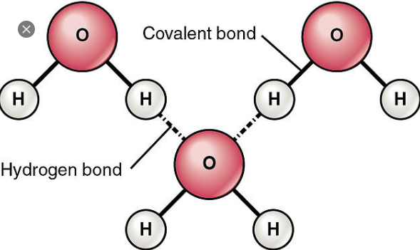 수소가 산소 혹은 질소와 같은 전기음성도가 큰 원자와 공유결합을 형성할때 결합을 형성하는 공유전자쌍은 수소로부터 전기음성도가 큰 원자쪽으로 쏠려 배치되며 이로 인해 수소는 부분적으로 양성의 전하를 띄게 됨. 그 결과 부분적으로 양전하를 띈 수소원자는 주변에 위치하는 분자내의 전기음성도가 큰 원소의 비공유전자쌍과 인력 현성이 가능한 위치까지 근접하는데 이러한 약한 인력을 '수소결합'이라고 함. 수소결합은 대부분 극성분자들 사이에 나타나고 물의 구조와 화학적 특징을 결정함에 중요할 뿐 아니라 생체에서 나타나는 거대분자들의 상호작용 및 구조에 영향을 미침.