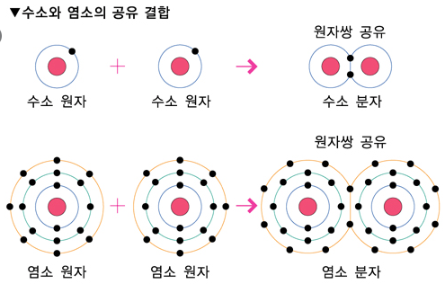 3) 공유결합과 비공유결합원자들은 다른 원자와 결합하여 원래의 원자와는 다른 성질을 지니는 분자를 생성하는데 이때 원자들 사이에 상호작용 또는 인력을 화학결합이라고 함. 공유결합과 비공유결합(수소결합, 이온결합, 소수성 상호작용, 반데르발스 힘)이 있음.