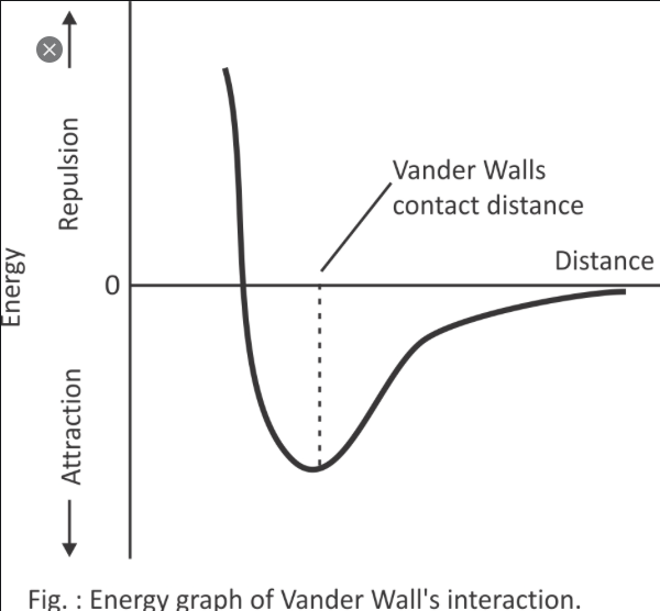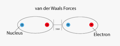 또한 분자내에서 일시적으로 형성된 이중극자는 인접한 분자에서 유사한 방식으로 전하의 거리를 유도할수 있음. 반데르발스 힘의 강도는 반응하는 원자의 거리에 따라 민감하며 두 원자들 사이의 거리가 약 4A에서 최대의 인력이 나타나고 거리가 멀어질수록 급격하게 감소하며 너무 근접하면 전자들간에 척력이나탐.