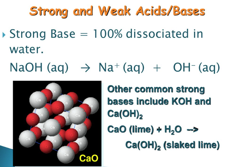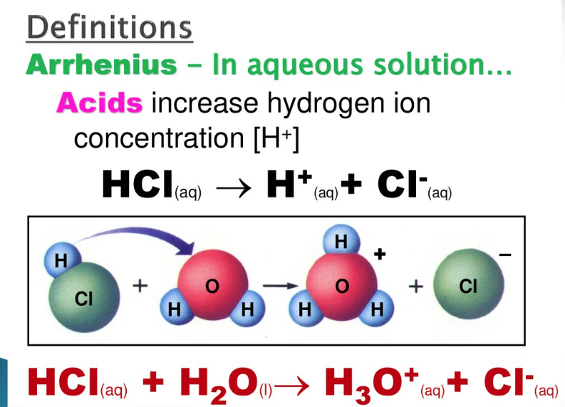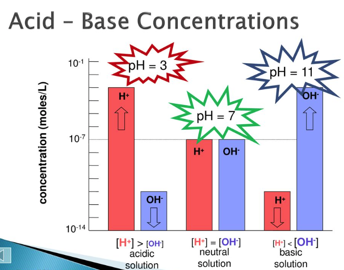 산은 수용액에서 이온화하여 수소이온을 방출하고 수욕액 내에서 물과 결합하여 H3O+로 존재함. 염기(base)는 수용액에서 이온화하여 수산화이옴(OH-)을 방출함.