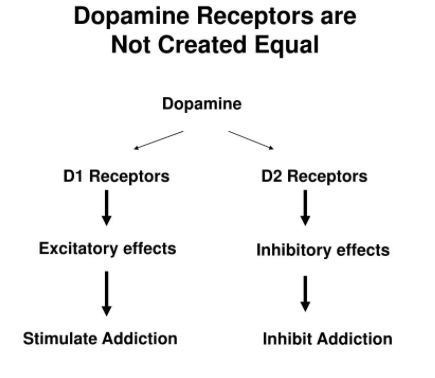 물론 신경전달물질의 작용이 이처럼 단순하지는 않음. 도파민은 수용체의 종류에 따라 흥분성 신호로 작용하기도 하고 억제성 신호로 작용하기도 함.