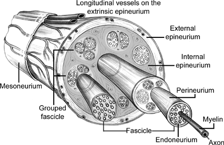 - fascicles의 모임을 해부학적으로 nerve라 불림(예: median nerve or a digital nerve.)