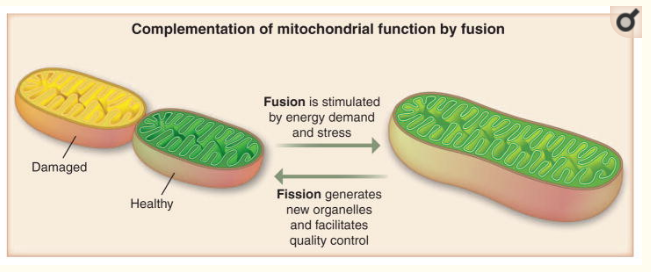 Mitochondrial fission and fusion play critical roles in maintaining functional mitochondria when cells experience metabolic or environmental stresses. Fusion helps mitigate stress by mixing the contents of partially damaged mitochondria as a form of complementation. Fission is needed to create new mitochondria, but it also contributes to quality control by enabling the removal of damaged mitochondria and can facilitate apoptosis during high levels of cellular stress. Disruptions in these processes affect normal development, and they have been implicated in neurodegenerative diseases, such as Parkinson’s.