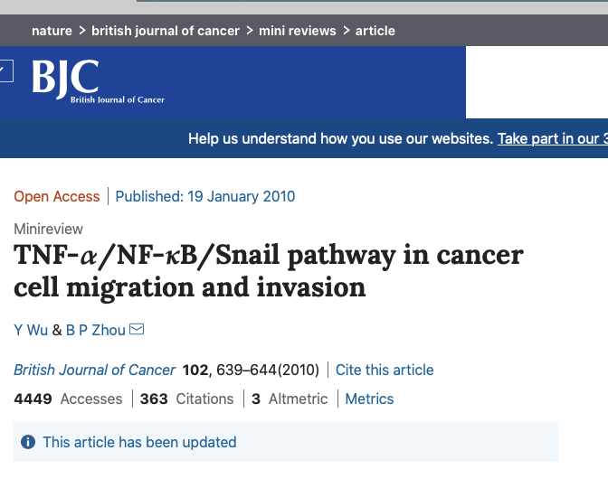 Tumour necrosis factor-alpha (TNF-α) is an important inflammatory factor that acts as a master switch in establishing an intricate link between inflammation and cancer. A wide variety of evidence has pointed to a critical role of TNF-α in tumour proliferation, migration, invasion and angiogenesis. The function of TNF-α as a key regulator of the tumour microenvironment is well recognised. We will emphasise the contribution of TNF-α and the nuclear factor-κB pathway on tumour cell invasion and metastasis. Understanding the mechanisms underlying inflammation-mediated metastasis will reveal new therapeutic targets for cancer prevention and treatment.