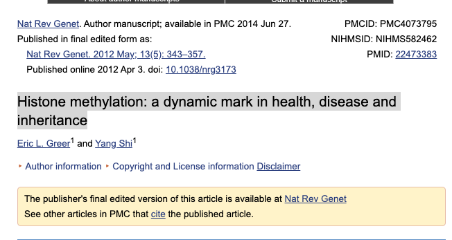 아래 논문은 히스톤 메틸화가 어떻게 일어나고 잘못되면서 발생하는 질병, 노화, 암, 유전 등에 관한 내용...