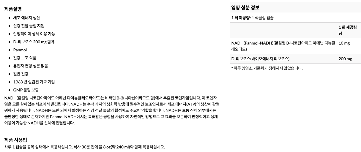 외견상, NAD의 모든 형태는 흡습성이 있고, 물에 잘 녹는 흰색의 무정형 분말이다.[4] NAD는 건조하고 어두운 곳에 보관하면 안정적이다. NAD+ 용액은 4 °C 및 중성 pH에서 약 1주일 동안 무색이며 안정적이지만, 산이나 알칼리에서는 빠르게 분해된다. NAD는 분해시 효소 저해제인 생성물을 형성한다.[5]