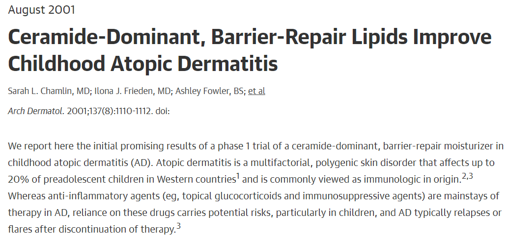 18. Janssens M, van Smeden J, Gooris GS, et al. Increase in short-chain ceramides correlates with an altered lipid organization and decreased barrier function in atopic eczema patients. J Lipid Res. 2012; 53:2755–2766. [PMC free article] [PubMed] [Google Scholar]