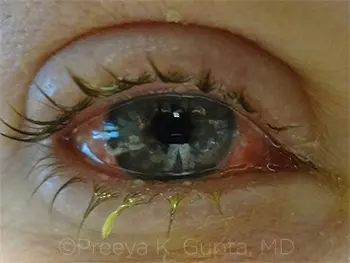 Temporary occlusion of the puncta through the insertion of plugs (collagen or silicone) or permanent occlusion by electrocautery can be used to block tear drainage and thus retain existing tears. Existing moisture can also be preserved by goggles or glasses with specially constructed side chambers. Despite a low acceptance by patients, these devices can be valuable in certain environmental conditions, such as wind. Soft contact lenses may be helpful but pose a risk of infection. Infection, which may present with sudden aggravation of symptoms and/or excessive mucus production, should be promptly treated. Corticosteroid-containing ophthalmic solutions should be avoided because they may induce corneal lesions or promote infection.
