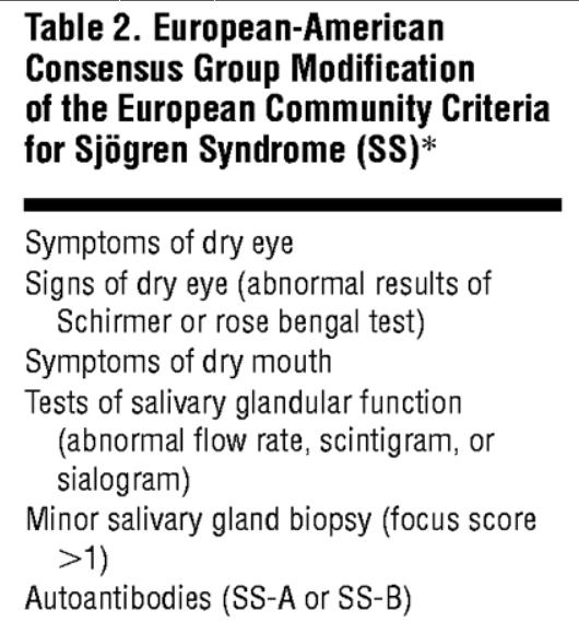 Anaya JMTalal N Sjögren's syndrome. Kassirer JPGreene HLeds. Current Therapy in Adult Medicine. Baltimore, Md4th ed. Mosby1997;1291- 1298Google Scholar