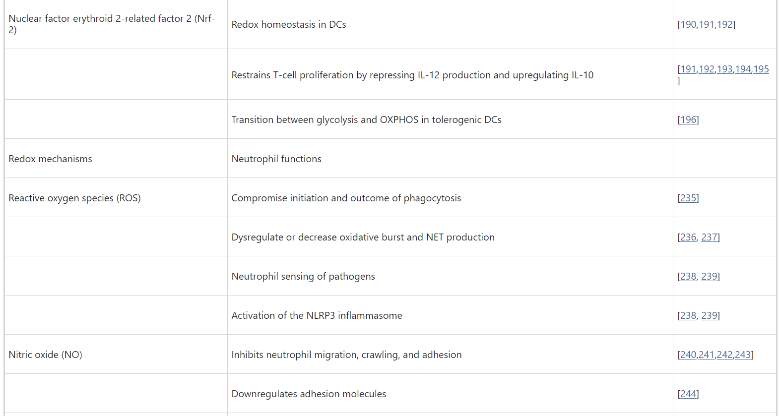 The function of individual neutrophils is heavily influenced by cellular redox status in terms of cellular antioxidant system activity and or ROS/RNS production. For example, excessive ROS fabrication may compromise the initiation and outcome of phagocytosis [235], resulting in a dysregulated or decreased oxidative burst [236] and production of NETs [237]. In addition, intracellular and extracellular levels of ROS play a role in neutrophil “sensing “ of pathogens and consequent activation of the NLRP3 inflammasome and cytokine synthesis [238, 239]. Chronically upregulated ROS and cytokine production may also result in the internalization of membrane chemokine receptors, most notably CXCR2 [240], thereby decreasing neutrophil migration.