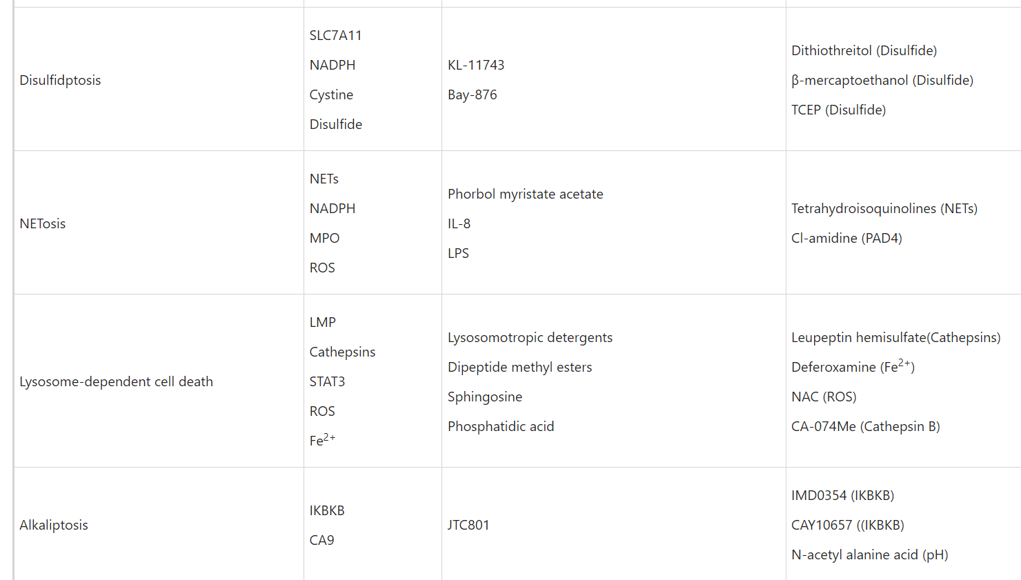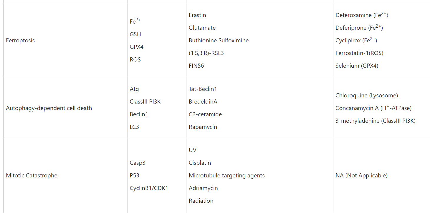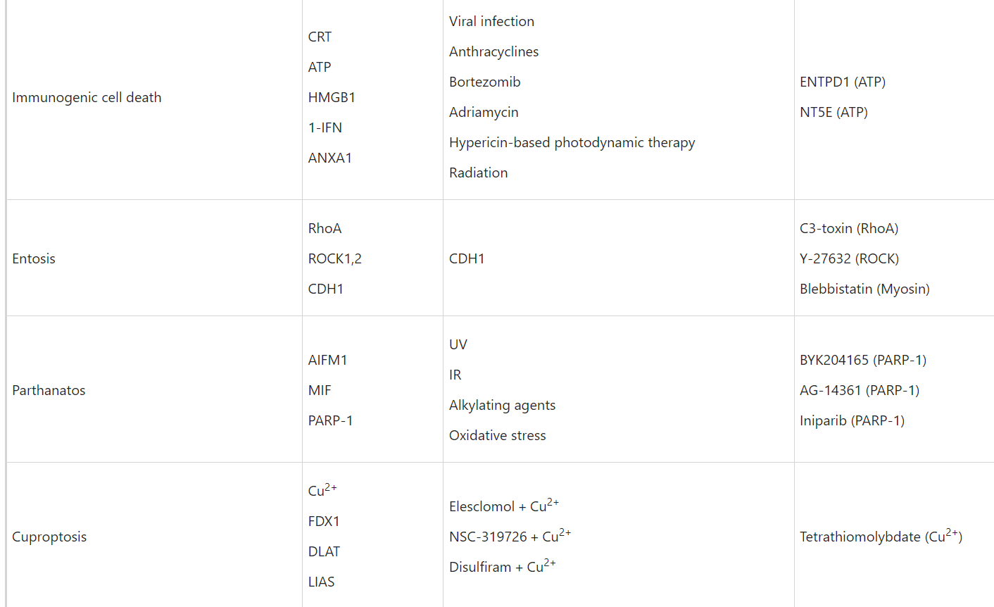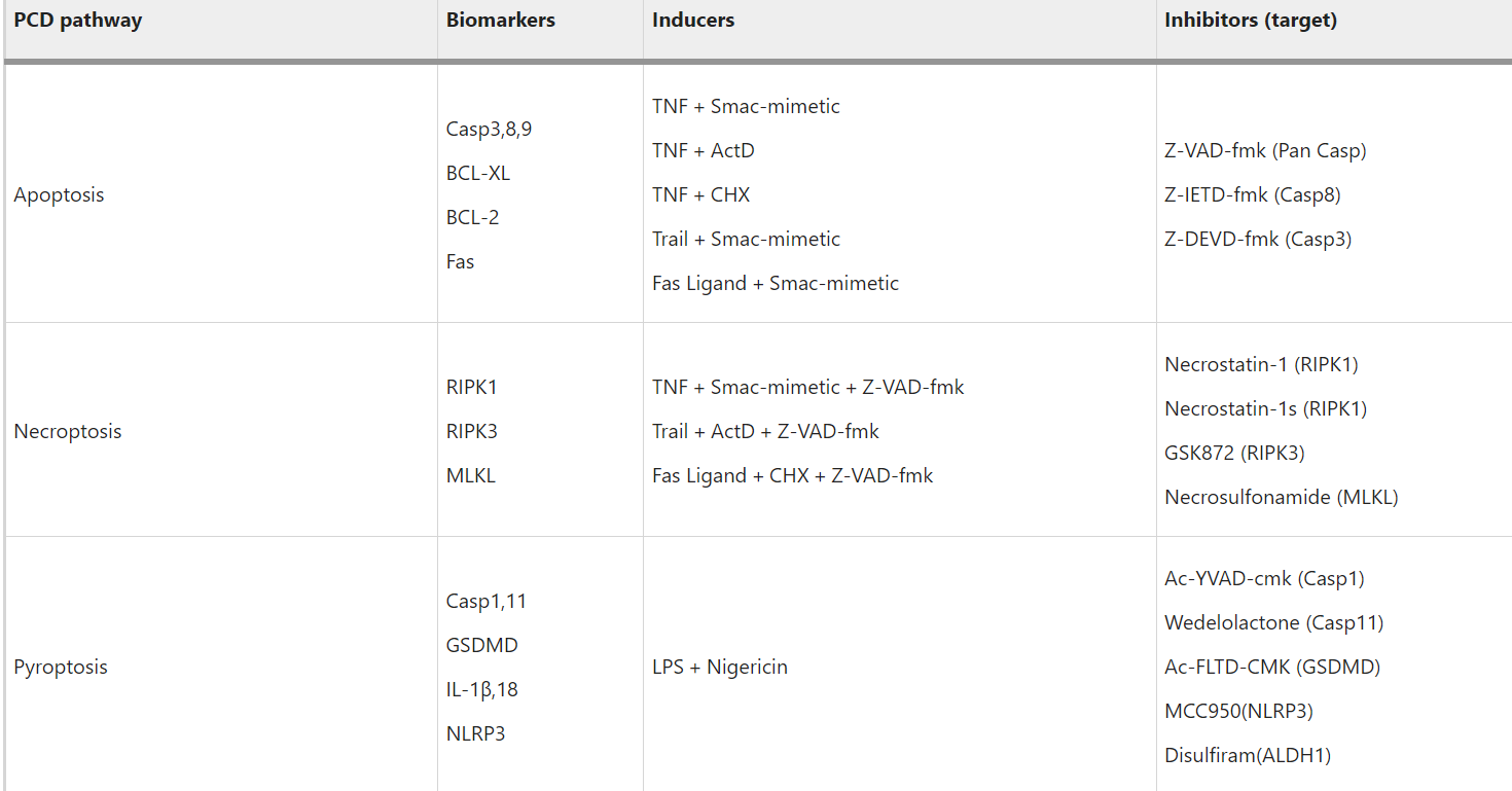 Table 2 Biomarkers of various PCDs and their inducers and inhibitors.